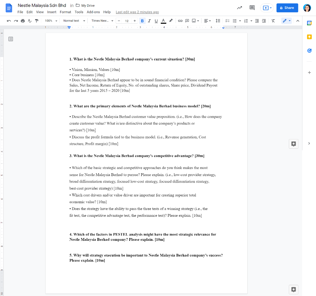 Nestle Malaysia Sdn Bhd In My Drive File Edit View Chegg Com