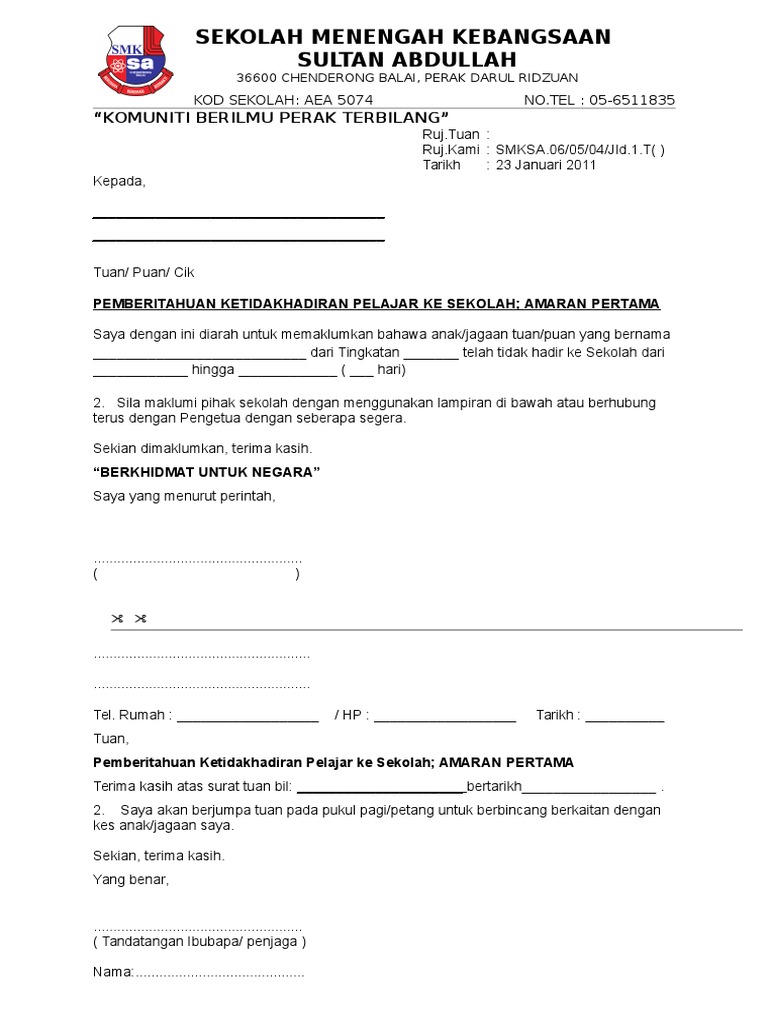 Surat Amaran Tidak Hadir Ke Sekolah Pdf